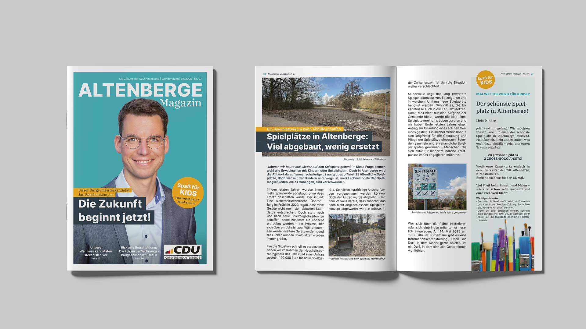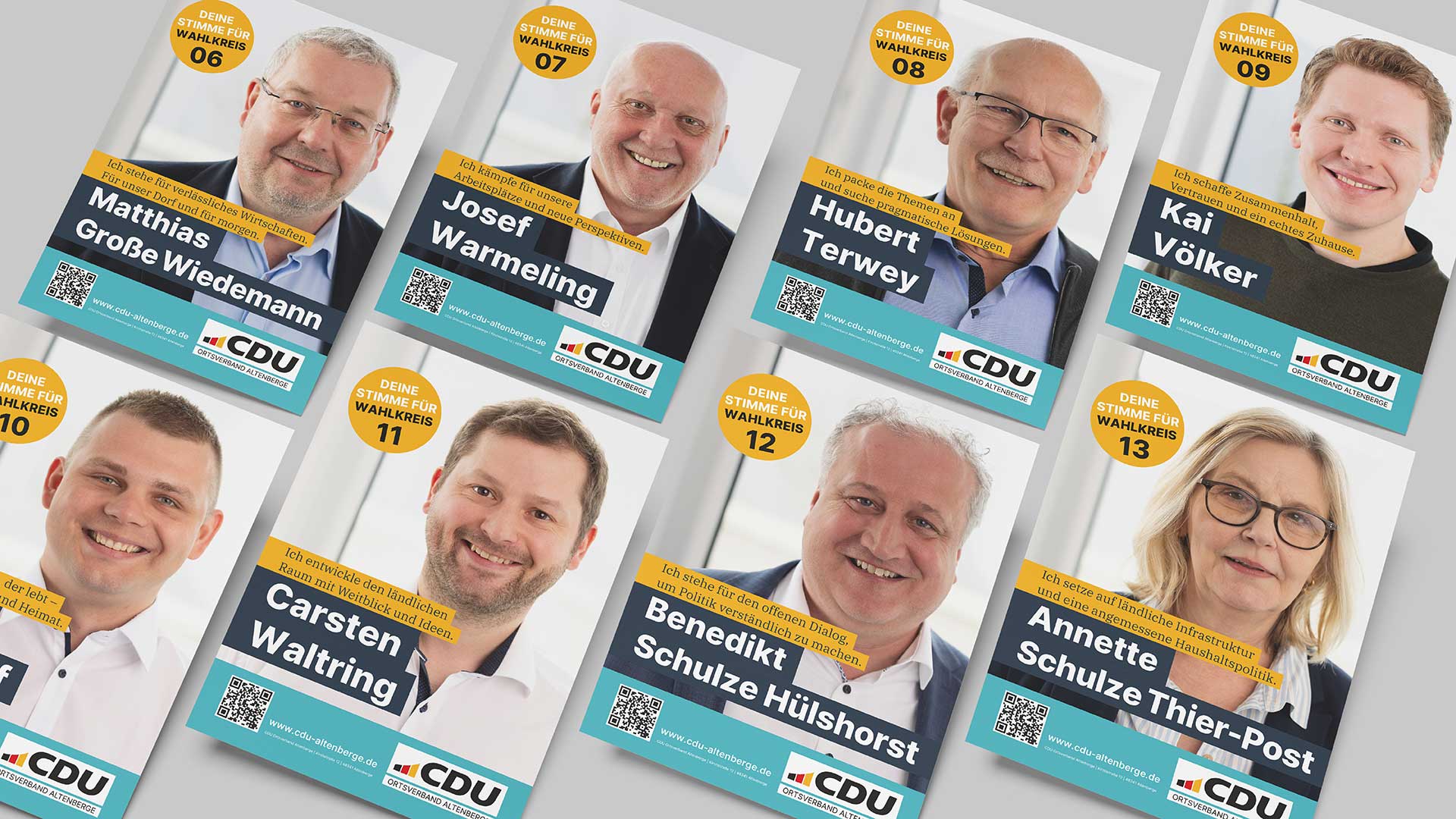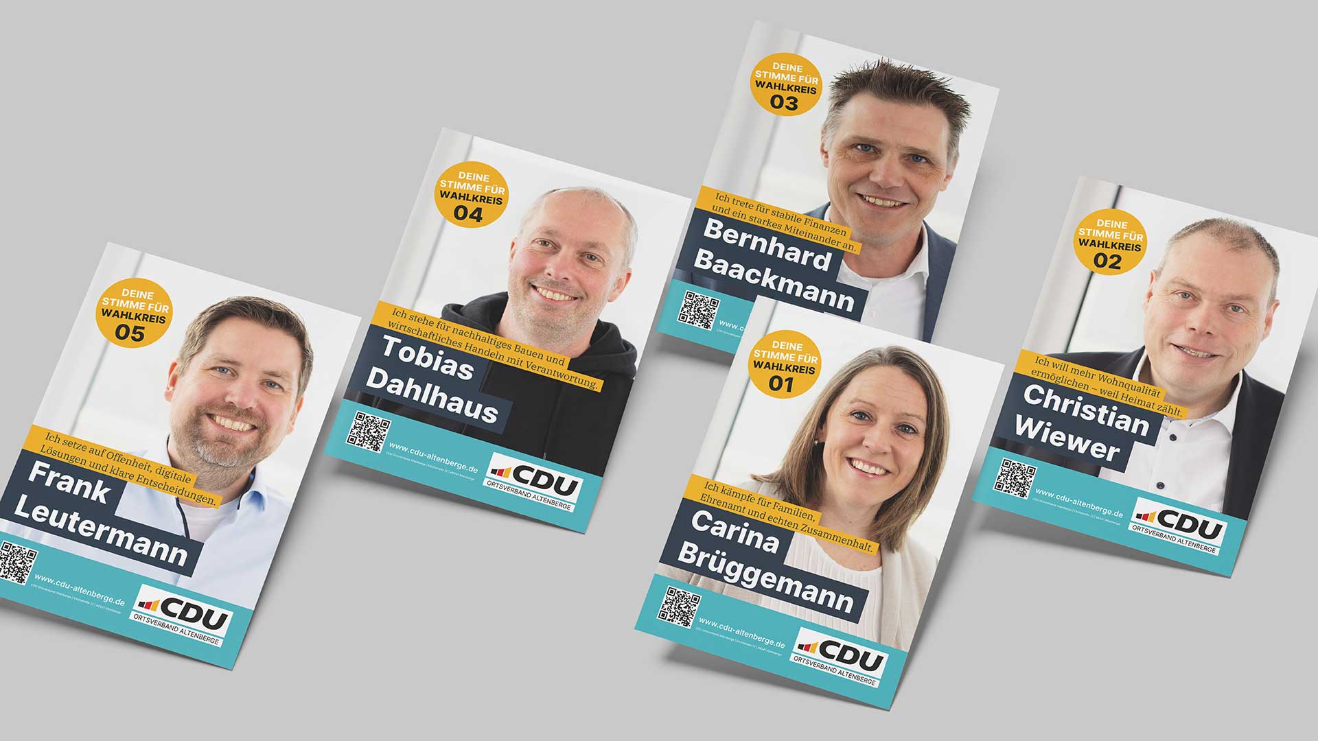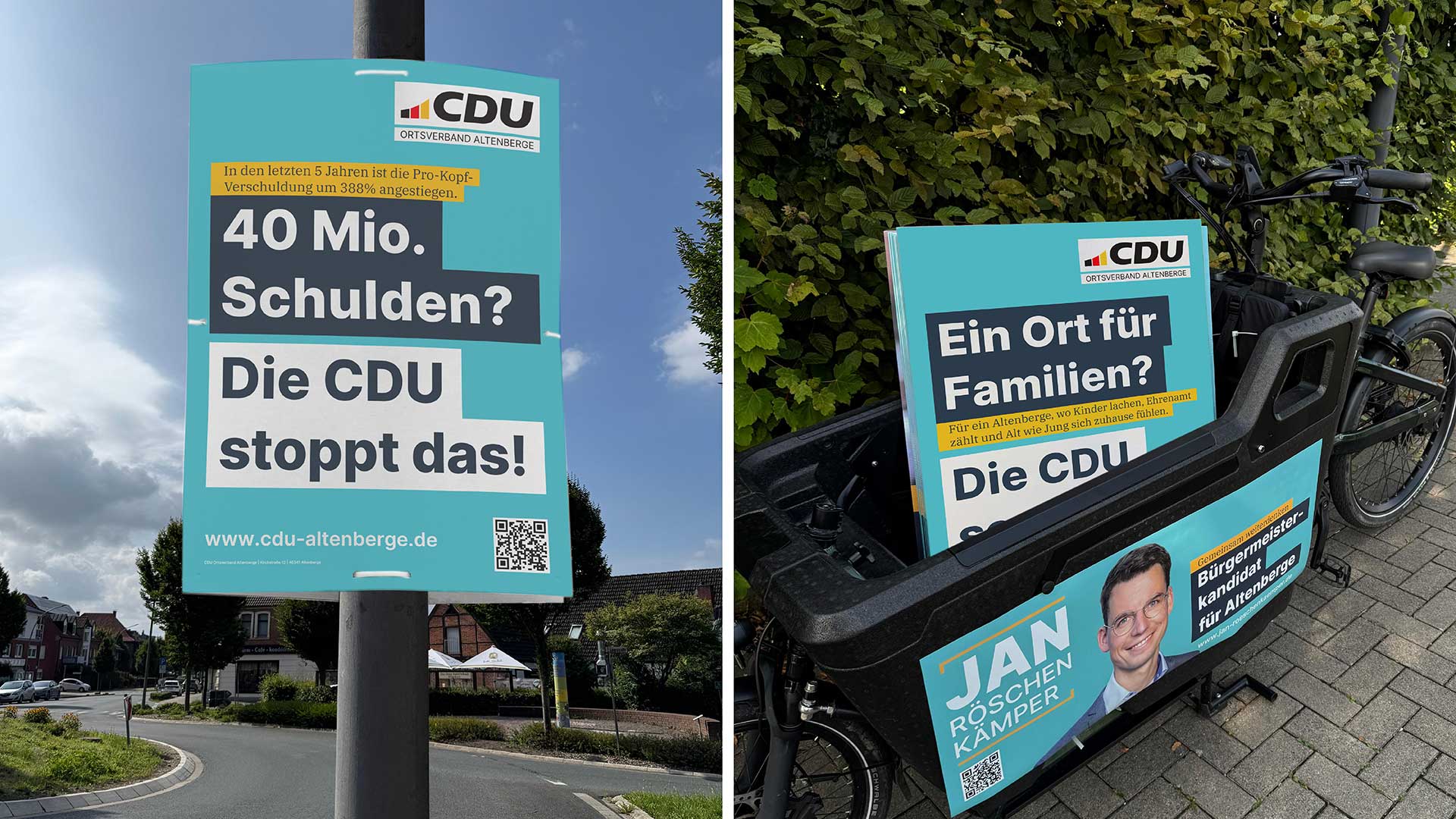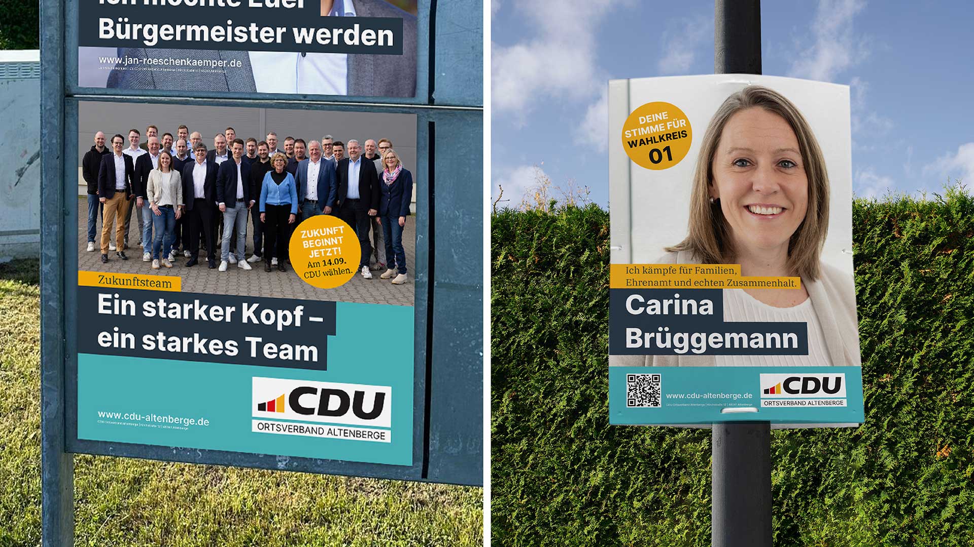 Für den Kommunalwahlkampf der CDU Altenberge haben wir die kommunikative Gesamtlinie entwickelt und den Wahlkampf gestalterisch im Rahmen des vorhandenen Corporate Designs der CDU sowie konzeptionell begleitet.